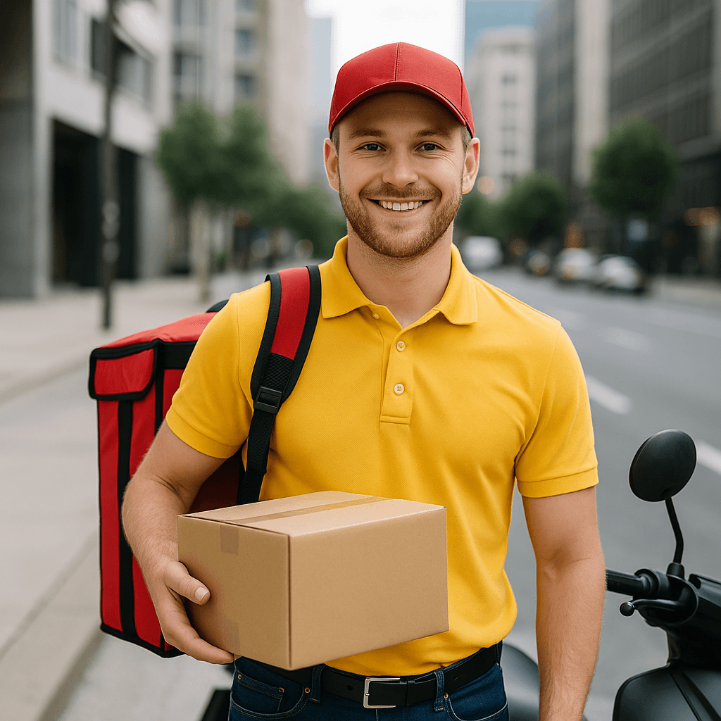 A delivery boy is a person who delivers goods like food, parcels, or documents from one place to another, usually to customers’ homes or offices.